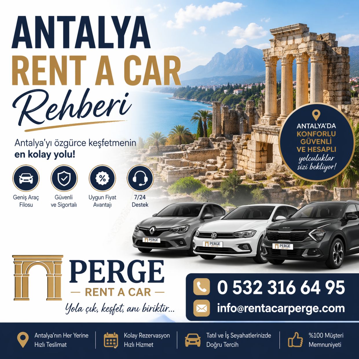 Antalya’da araç kiralama hizmeti; konfor, zaman yönetimi ve özgürlük açısından büyük avantaj sağlar. Doğru araç seçimi, erken rezervasyon, güvenilir firma tercihi ve detaylı sözleşme incelemesi ile sorunsuz bir deneyim yaşamak mümkündür. Antalya gibi geniş ve keşfedilecek birçok noktaya sahip bir şehirde araç kiralama, tatilin kalitesini doğrudan artıran en önemli unsurlardan biridir.