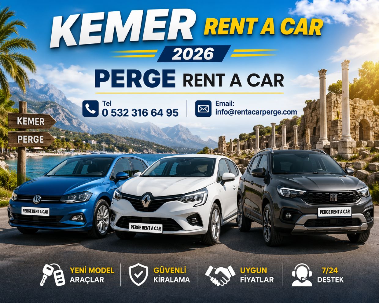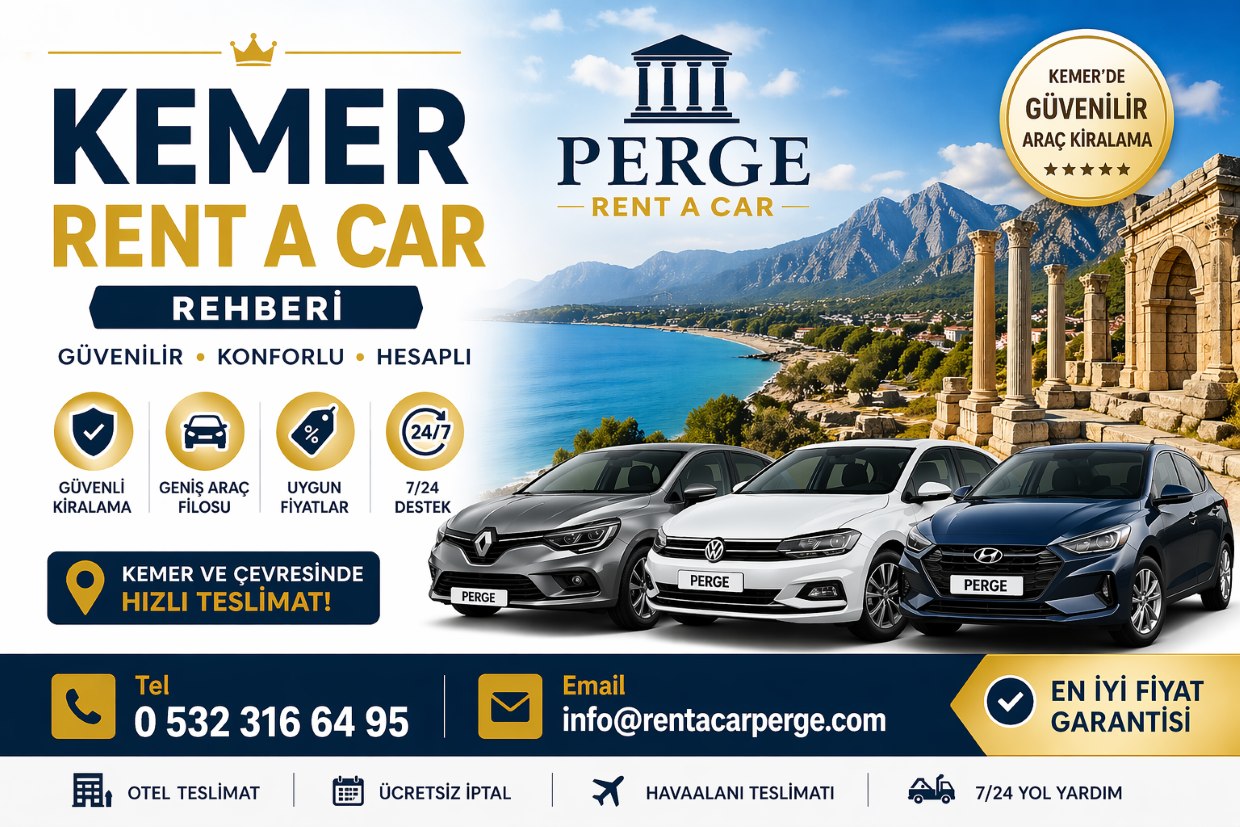 Kemer’de araç kiralama hizmeti; özgürlük, konfor ve zaman tasarrufu açısından tatilin vazgeçilmez bir parçasıdır. Doğru araç seçimi, erken rezervasyon, güvenilir firma tercihi ve sözleşme detaylarına dikkat edilmesi sayesinde sorunsuz bir kiralama deneyimi yaşanabilir. Kemer gibi keşfedilecek birçok noktaya sahip bir tatil bölgesinde araç kiralama, seyahat kalitesini önemli ölçüde artırır.