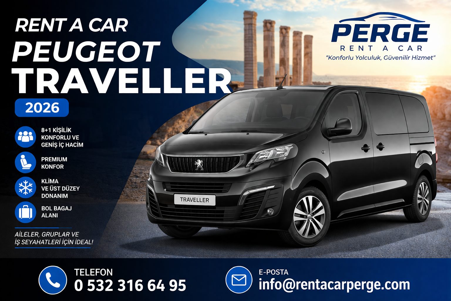 Uzun yolculuklarda konfor arayan kullanıcılar için konforlu minibüs seçenekleri büyük avantaj sağlar. Geniş koltuk mesafesi, klima sistemi ve sessiz sürüş deneyimi sayesinde yolculuk boyunca maksimum rahatlık sunulur. Ayrıca fazla eşya taşıyan gruplar için bagaj hacmi geniş araç seçenekleri, ekstra alan ihtiyacını karşılar.